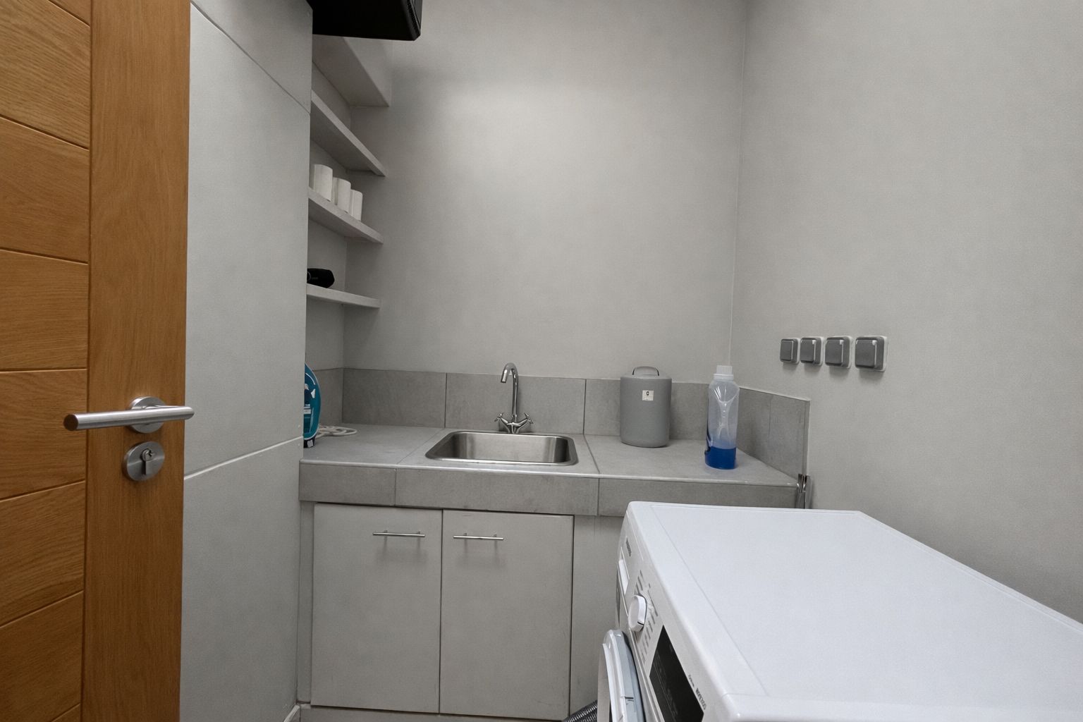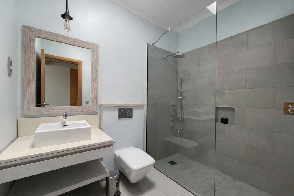 The modern kitchen is fully equipped and thoughtfully laid out for everyday living, complemented by a laundry room and well-integrated storage areas. Natural materials such as stone and wood have been carefully selected, echoing the surrounding environment and creating an atmosphere that is both refined and welcoming. Large openings, natural ventilation and high ceilings enhance the sense of space and well-being throughout the villa.