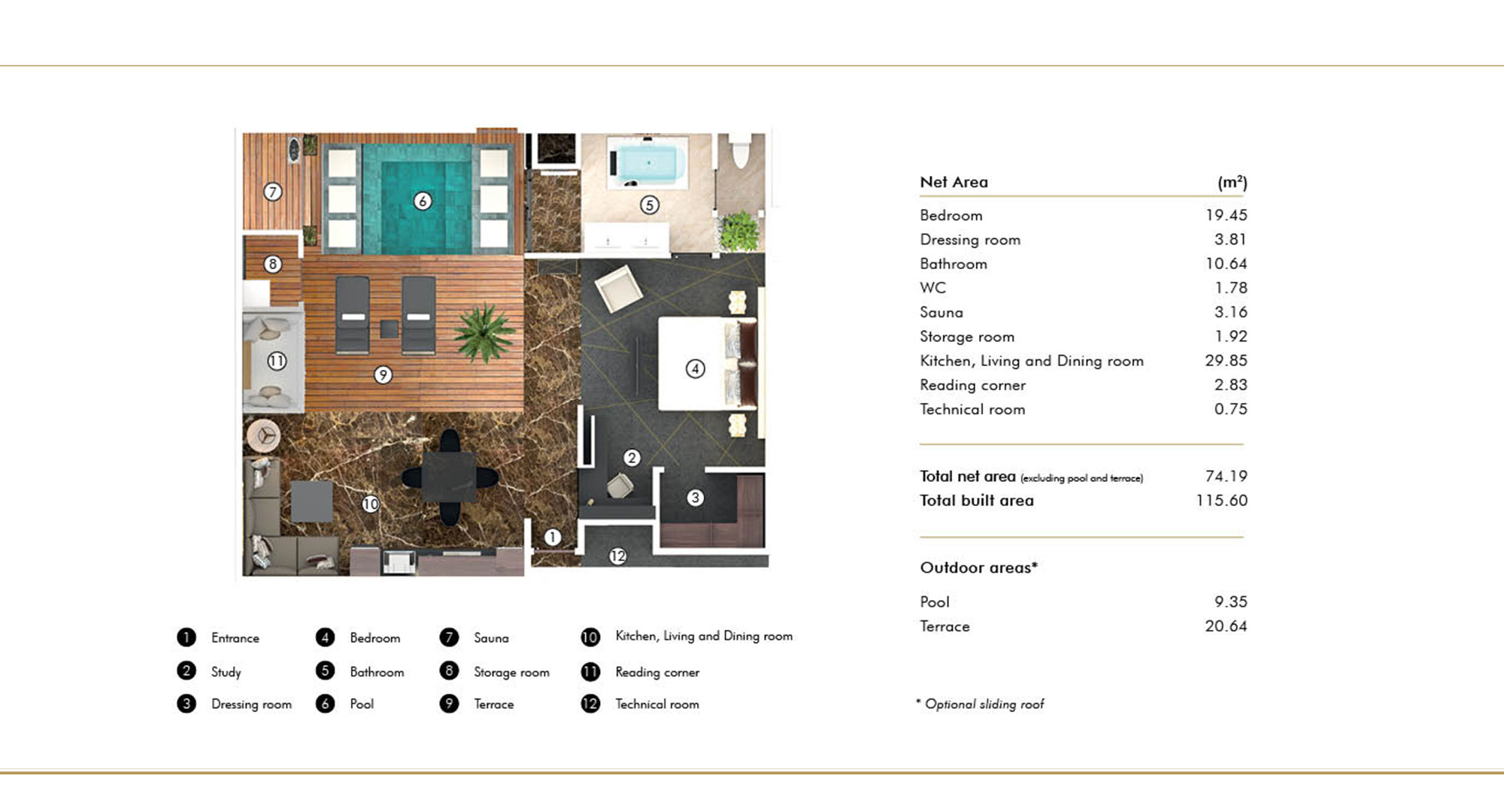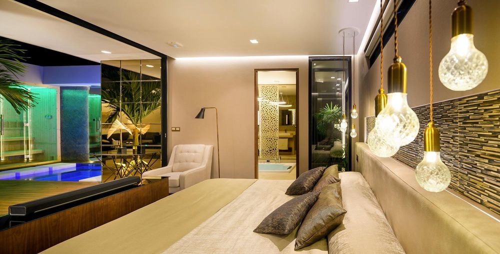 Step into your private sanctuary featuring spacious bedrooms with walk-in dressing rooms, lavish bathrooms with walk-in showers and jacuzzi tubs that open directly onto your heated natural-stone pool. Your exterior sauna overlooks this private aquatic haven, while glass-roofed corridors ensure weather-protected luxury throughout the resort.
