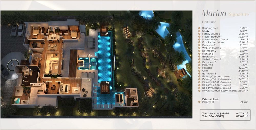 Six sumptuous en-suite bedrooms, each opening to private gardens, create an intimate sanctuary within your expansive 700-2,300m2 landscaped estate. Soaring 3.2-7m ceilings amplify the sense of grandeur, while your private cinema and spa-inspired bathrooms elevate everyday living to resort-standard indulgence.