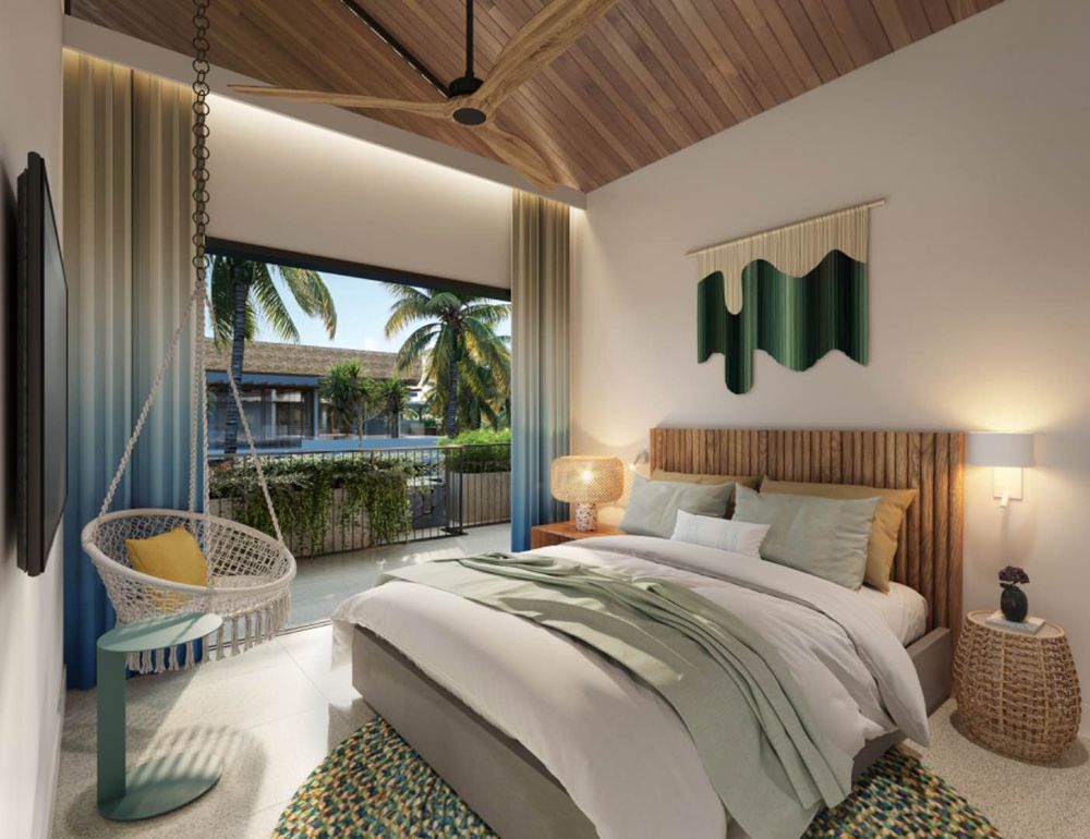 The penthouses champion climatically responsive design—maximising natural ventilation, utilising passive solar shading and employing durable, locally sympathetic materials to harmonise with the coastal landscape. Curved façades and material choices reference La Pirogue’s heritage bungalows while contemporary detailing meets modern lifestyle needs. The result is low maintenance luxury that feels intrinsically Mauritian: tactile, warm and timeless.
