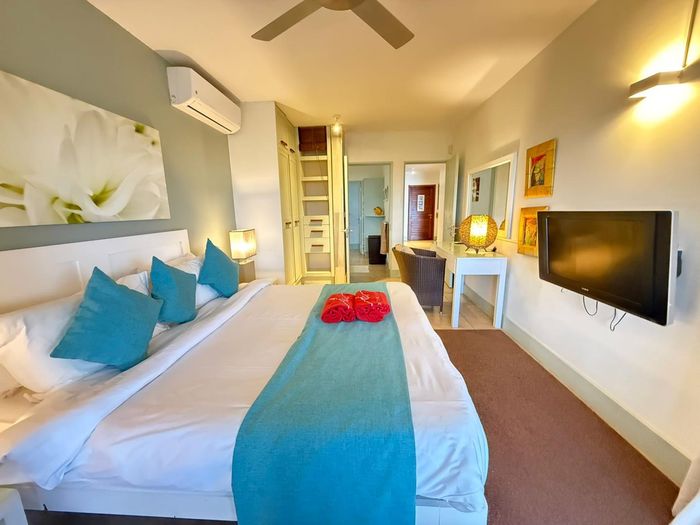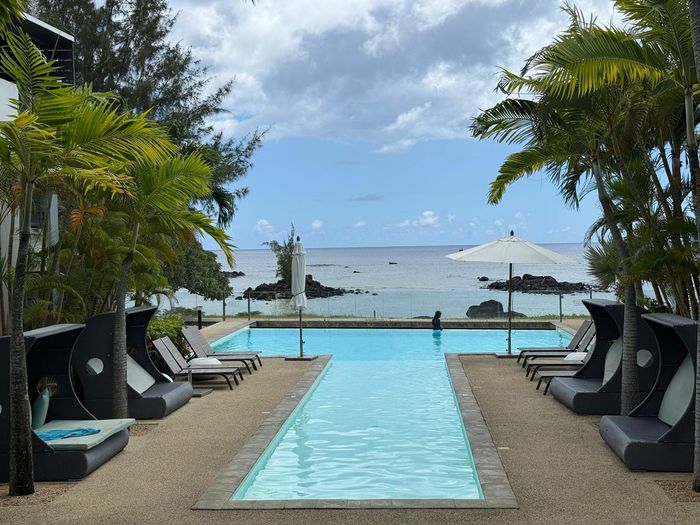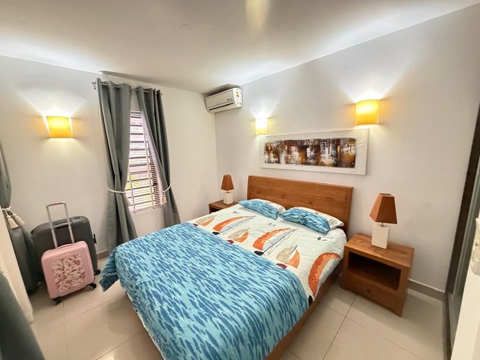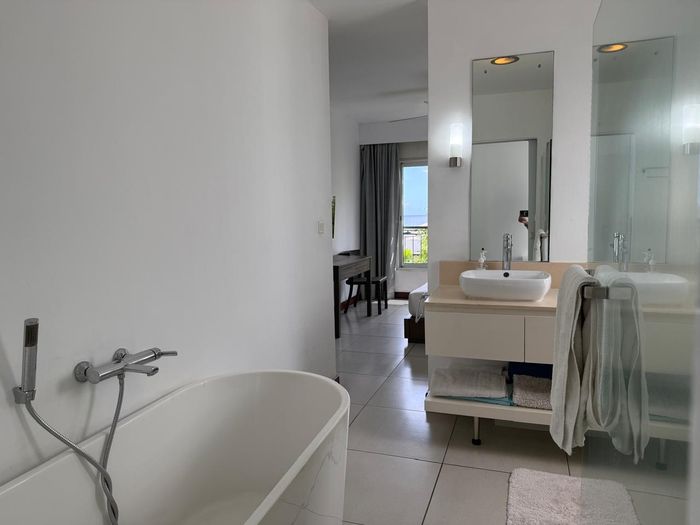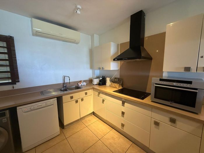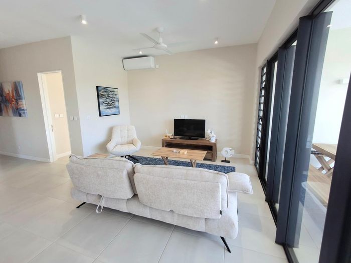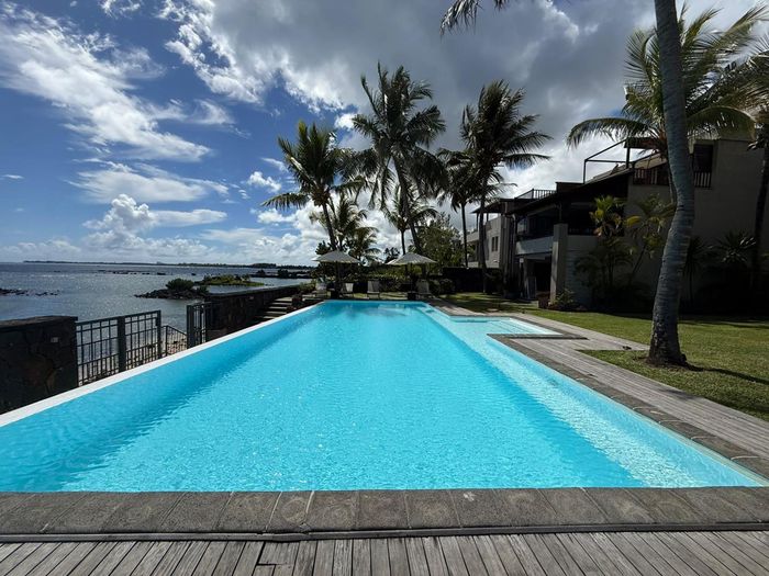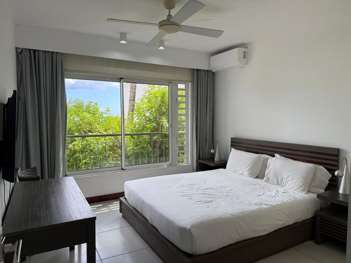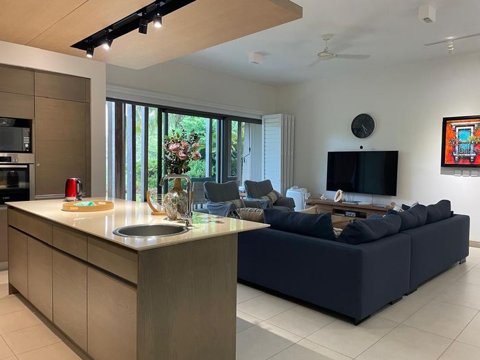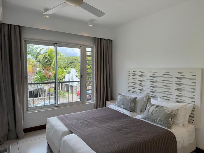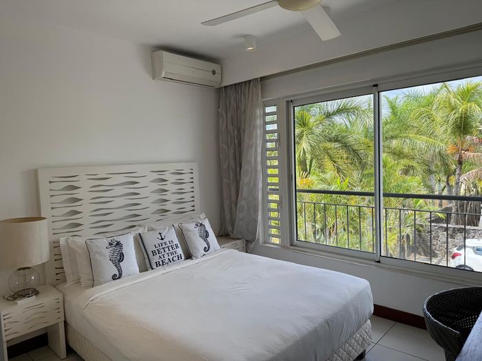 Coastal lock-up-and-go living minutes from Tamarin's beaches, cafés and shops — two-level, fully furnished home with partial sea views and rare secure underground parking. Three beds, two baths.