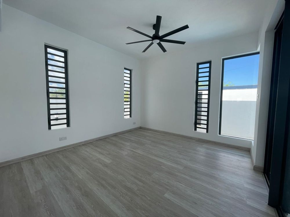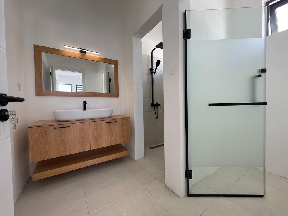The master suite also enjoys direct access to the pool, enhancing the sense of openness and resort-style comfort. It features its own en-suite bathroom, ensuring privacy and convenience. Two additional air-conditioned bedrooms share a modern bathroom with shower and toilet. A practical storage room completes the property, adding valuable functionality to everyday living.