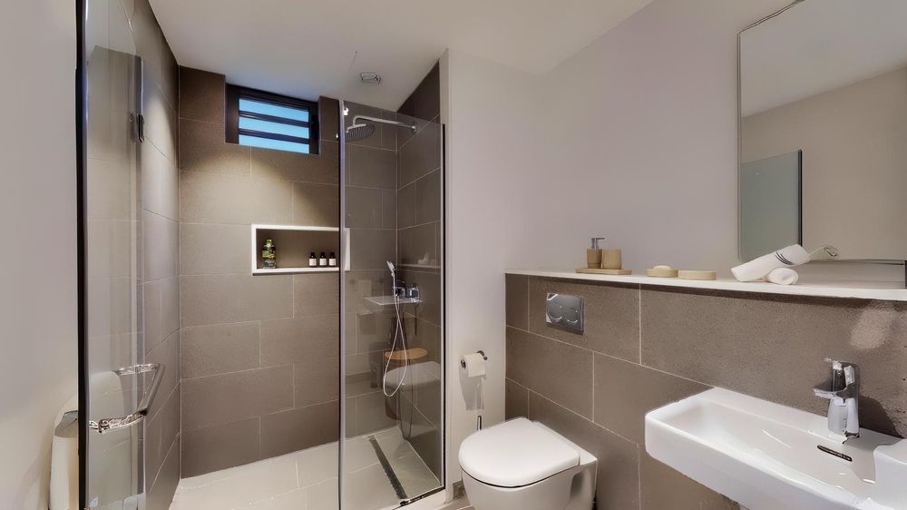 Inside, you'll find a thoughtfully designed open-plan kitchen, dining, and living area that exudes style and comfort. The space is surprisingly expansive, providing a cozy yet luxurious atmosphere. The living room is equipped with air conditioning, ensuring year-round comfort, and seamlessly connects to a separate scullery that offers additional storage and functionality. The unit features two large bedrooms, each with ample closet space—an uncommon feature that adds to the convenience and practicality of the apartment. The main bedroom enjoys a peaceful outlook over the communal pool and includes a private ensuite bathroom.