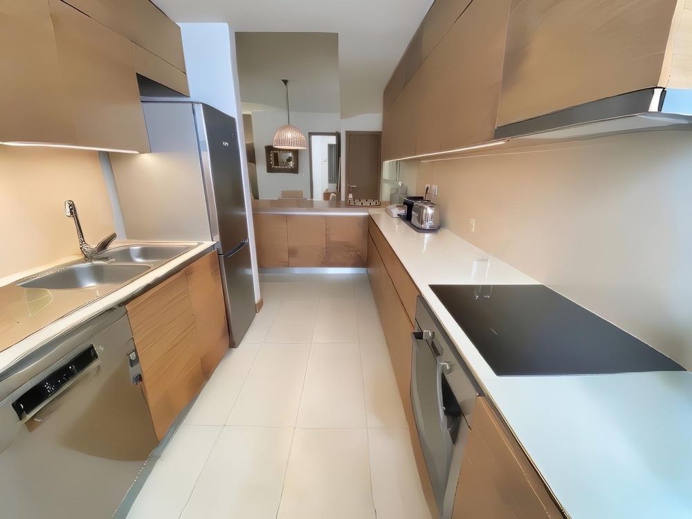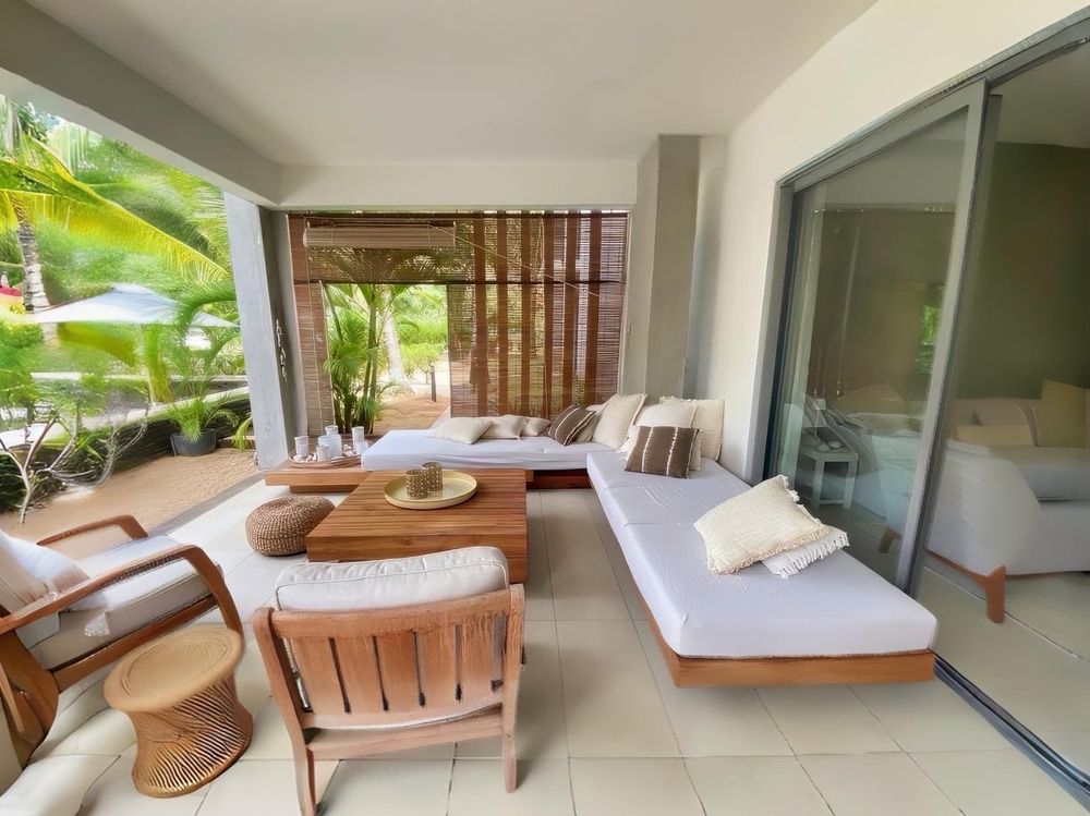 This GROUND FLOOR apartment boasts an interior living space of 160.57 m2, with a total area of 187.04 m2 including the covered terrace, plus a private garden. The residence features a modern open-plan living, dining, and kitchen area, creating a seamless flow for comfortable living and entertaining. The expansive, fully covered terrace overlooks one of the communal pools, extending the living space outdoors and providing easy access to the gardens. Fully furnished with tasteful, high-end décor, this move-in ready apartment offers a seamless transition to the luxurious Mont Choisy lifestyle. Fibre internet is already installed, ensuring high-speed connectivity.