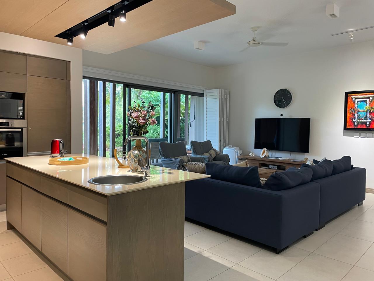 Within the prestigious Mont Choisy Golf & Beach Estate, this exceptional ground-floor residence redefines the standards of coastal refinement. Bathed in natural light and nestled in the serene landscape of Northern Mauritius, this two hundred and five square meter apartment stands as a sanctuary of sophisticated living. The architecture emphasizes an absolute fluidity between the contemporary interiors and the surrounding lush greenery, offering a lifestyle where luxury is both discreet and authentic.