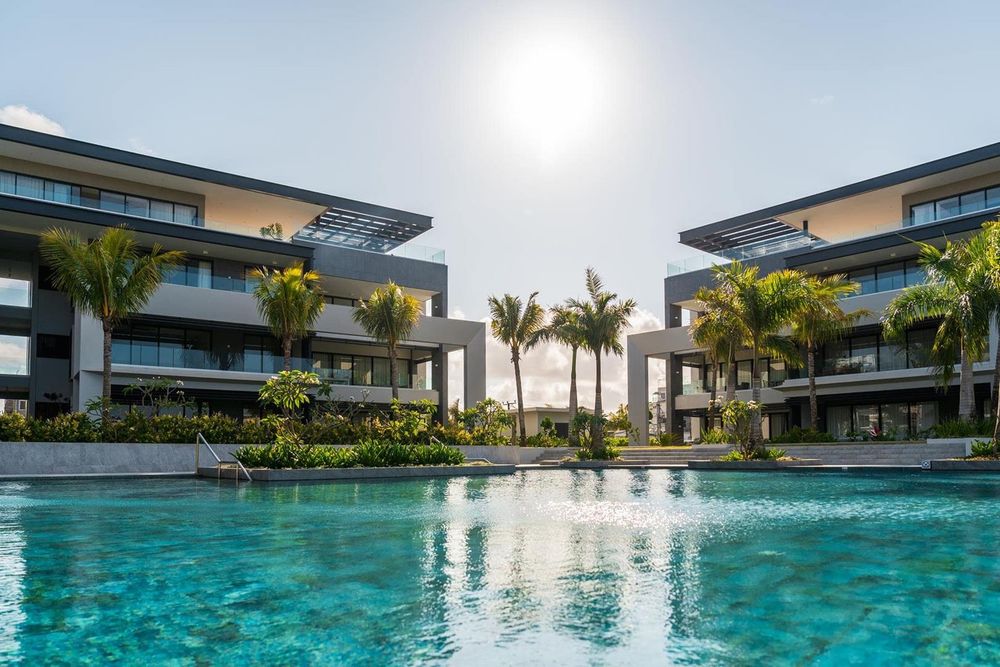 Designed for easy, modern living, the apartment features clean architectural lines, natural finishes, and a calm, contemporary island feel.