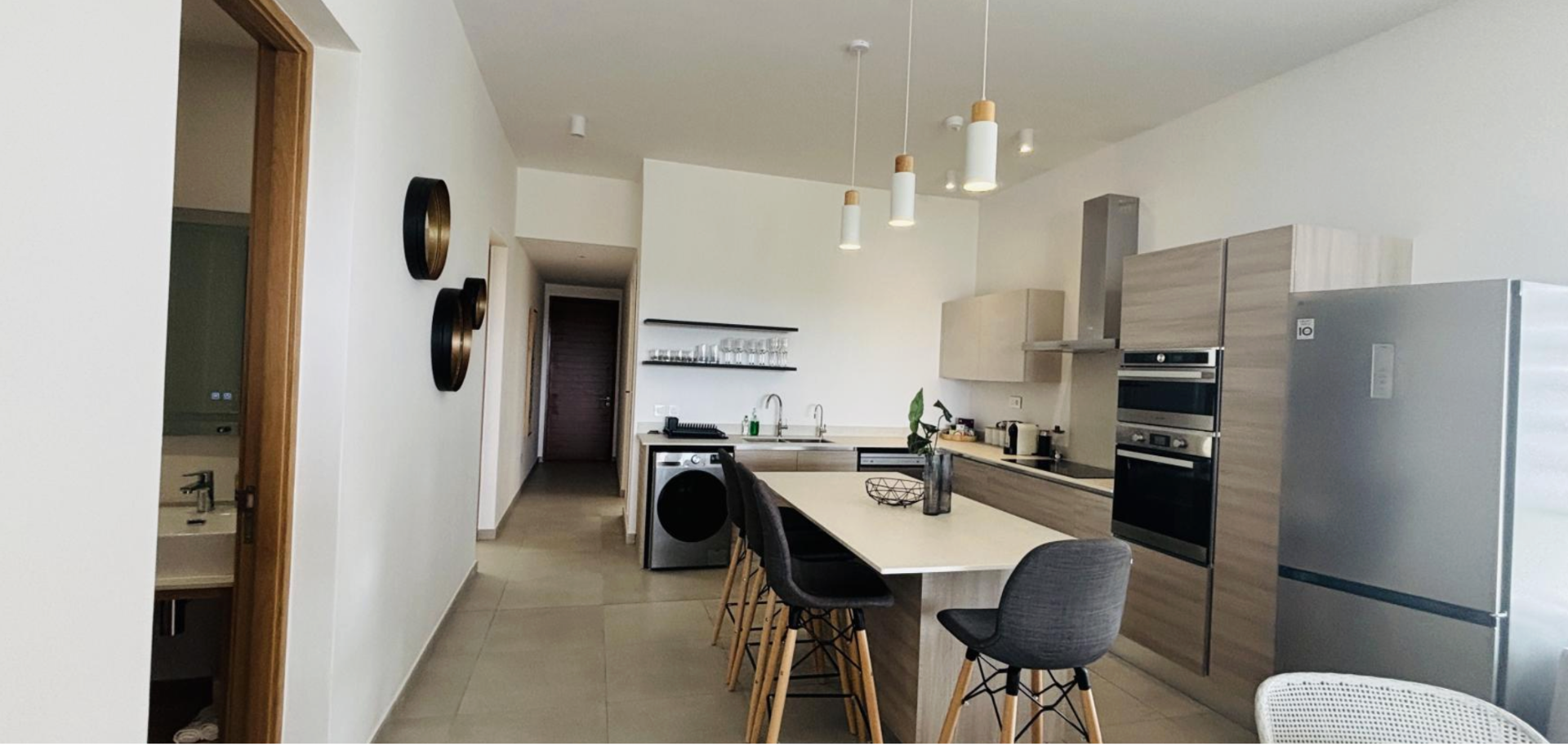 Step into a world of modern elegance with this fully furnished penthouse, thoughtfully designed with beautiful contemporary touches throughout. Two spacious bedrooms, each featuring luxurious ensuite bathrooms, provide the ultimate in comfort and privacy. Your private balcony overlooks the picturesque Pereybere coastline – the perfect spot to unwind with evening cocktails as the sun melts into the Indian Ocean.