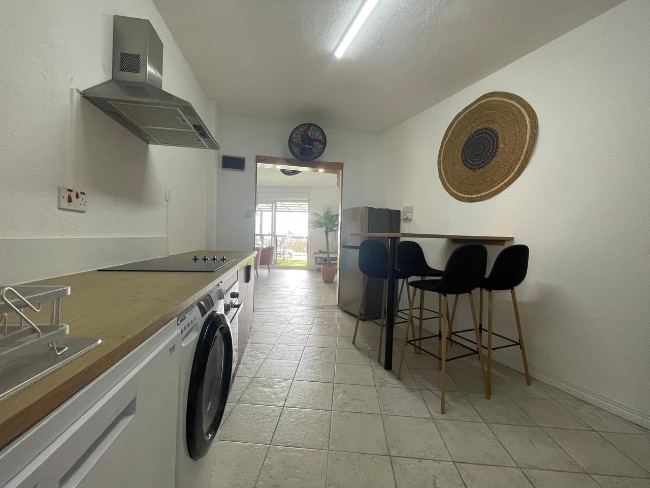 The living space is designed around a bright lounge that opens onto a private terrace, creating a seamless transition to the outdoors and providing an ideal vantage point to appreciate the proximity of the sea. The interior layout is fluid and coherent, featuring two peaceful bedrooms, a functional kitchen, and a bathroom, all connected by a well-appointed hallway.