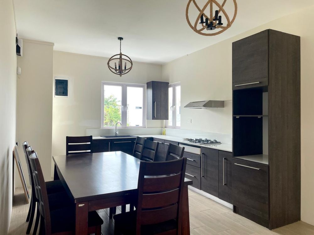 Set within a secured environment with electric fencing, the villa is surrounded by a spacious landscaped garden featuring a swimming pool, ideal for enjoying the Mauritian climate in complete serenity.