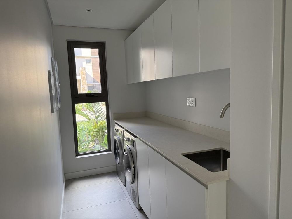 Offering 177.3m2 of internal space, the residence comprises three bedrooms, two bathrooms and a guest cloakroom. The kitchen is fully equipped with Bosch appliances and connects seamlessly to the main living and dining areas. A separate scullery with washing and drying space adds everyday practicality. The north-east facing aspect ensures a bright, airy atmosphere throughout.