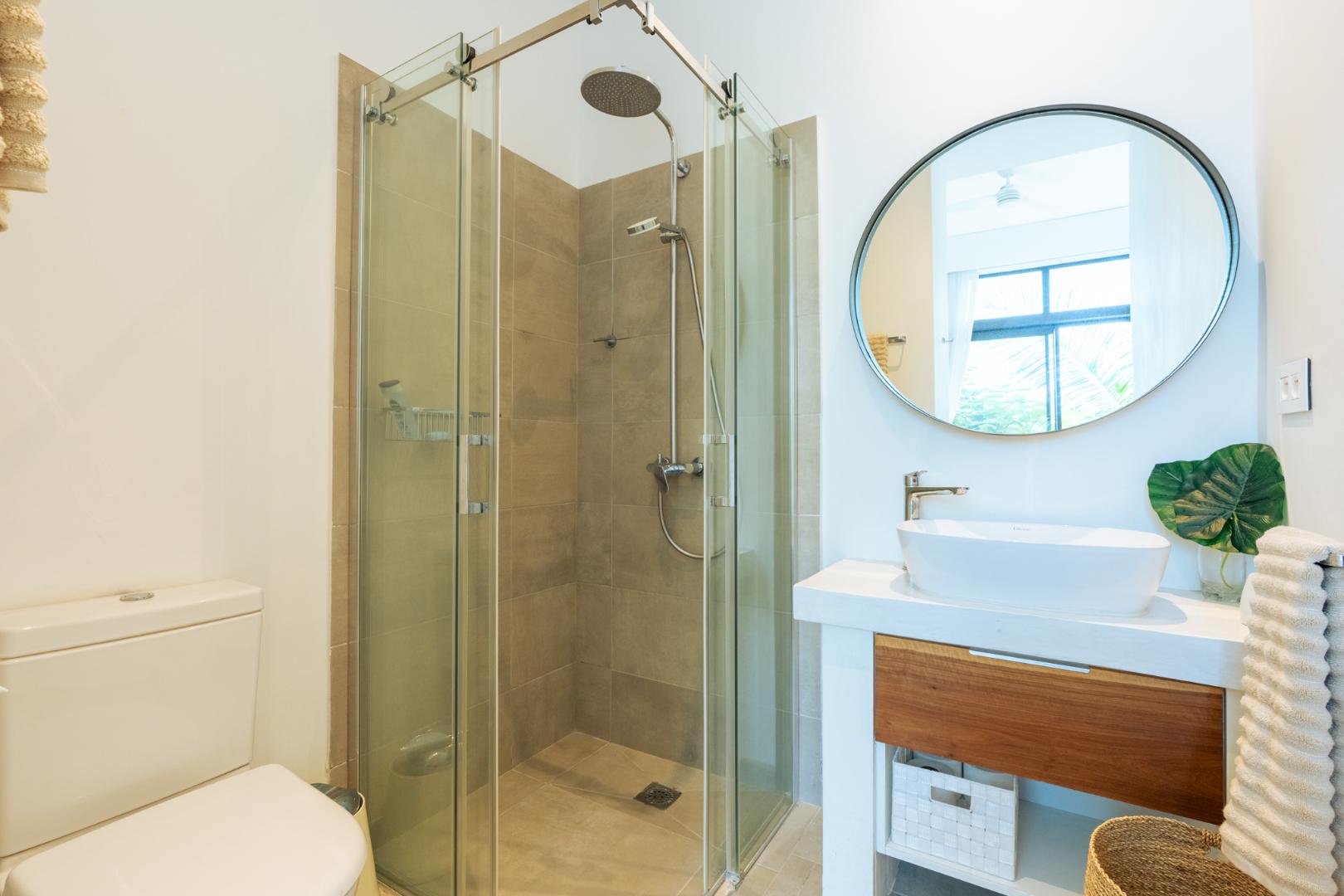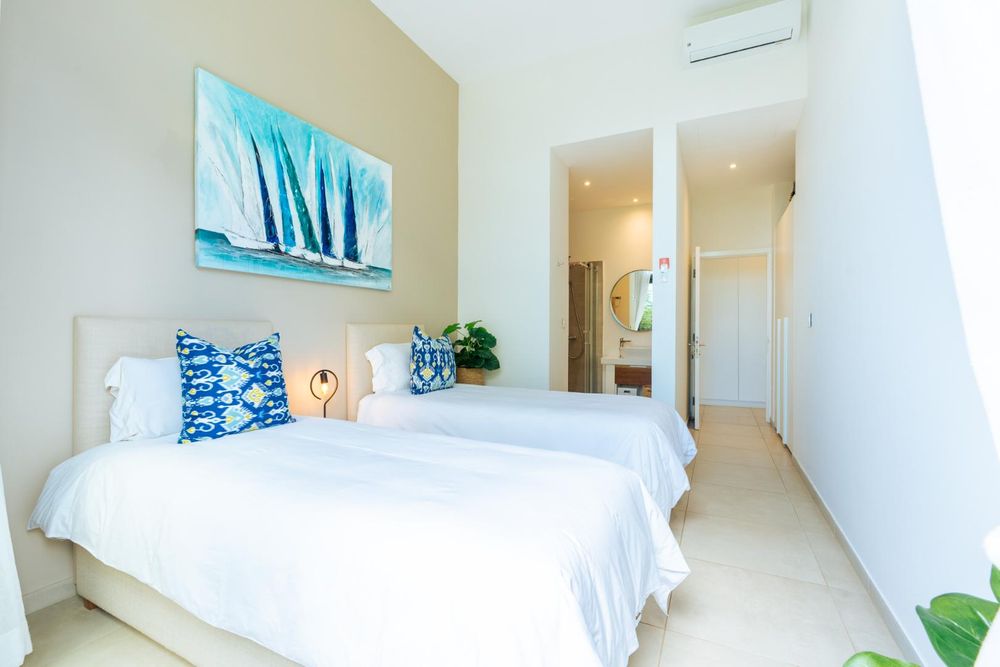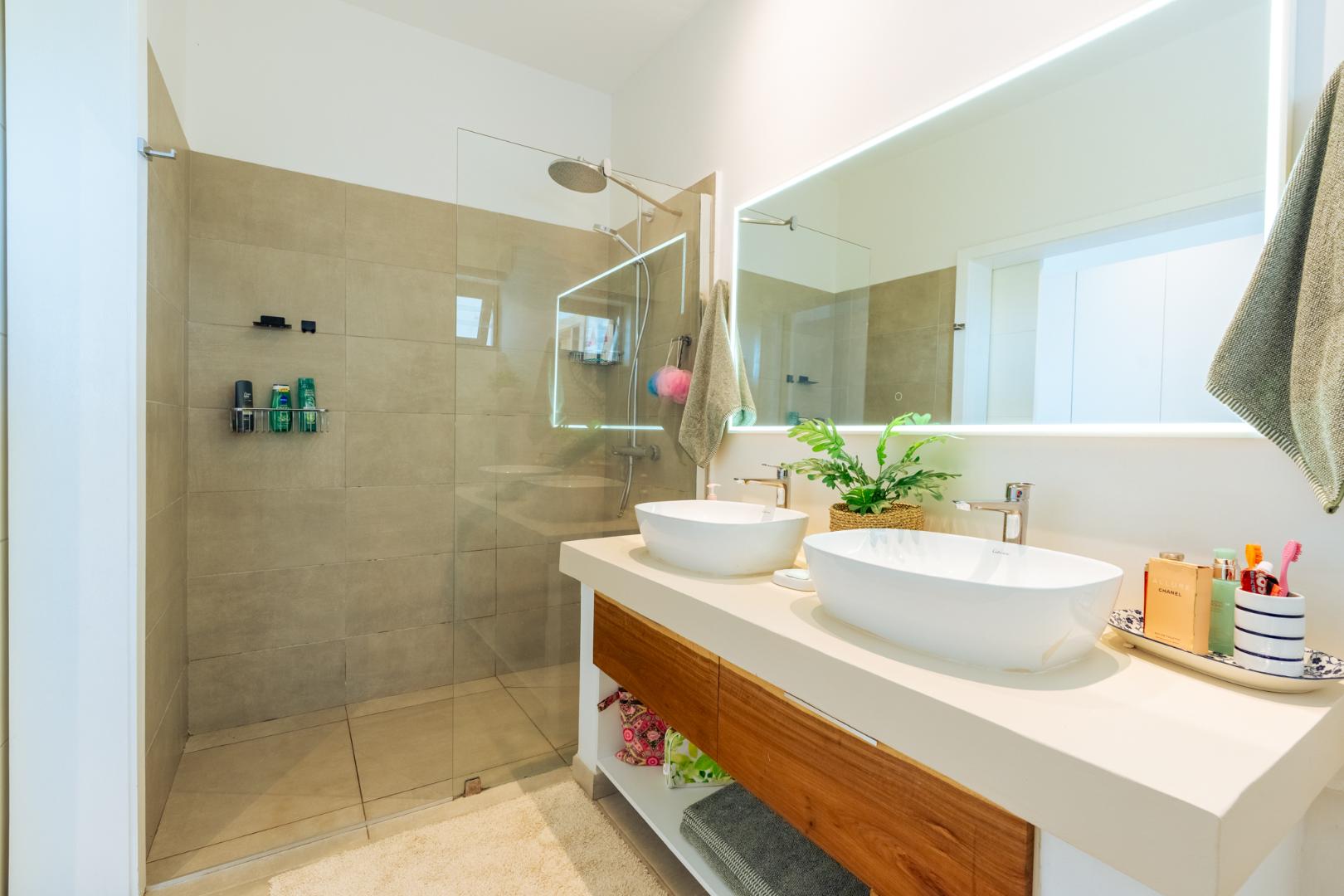 Upstairs, a private 121m2 open air entertainment terrace truly sets this property apart. Designed for effortless entertaining, it includes built in cupboards, a bar counter, a shower and expansive space for dining or relaxing. From here, you enjoy stunning 360 degree views incorporating the ocean, Coin de Mire, Flat Island and the surrounding mountains.
