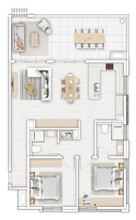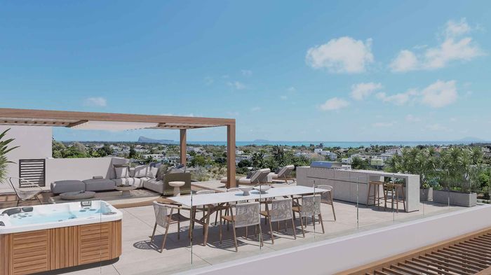 Effortless coastal living in Calodyne, minutes from beach, shops and Grand Baie; top-floor penthouse with private rooftop terrace, pergola and plunge pool — three bedrooms, two bathrooms, two parking.