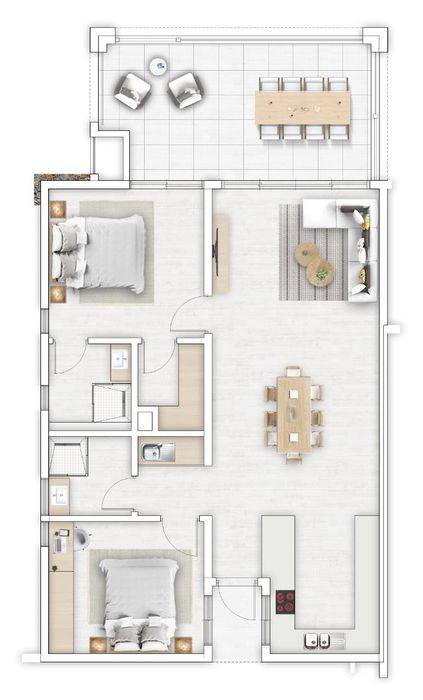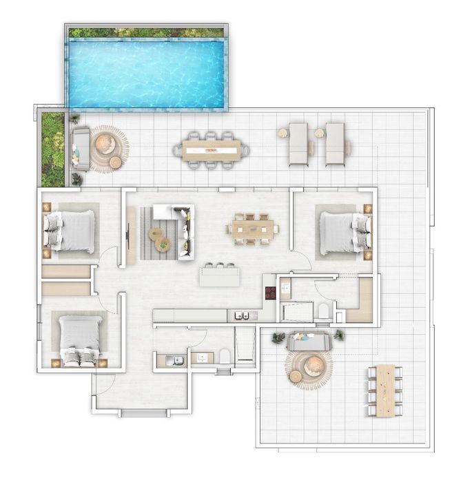 Embrace relaxed island living with pool-view balconies, open-plan layouts and premium finishes in a secure, managed community — ideal investment or second home; two bedrooms, two baths, covered parking.