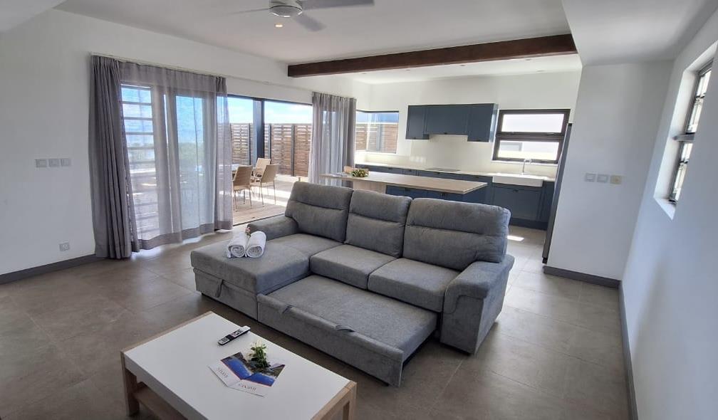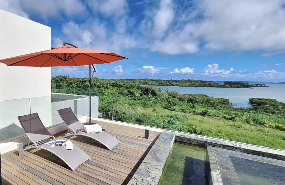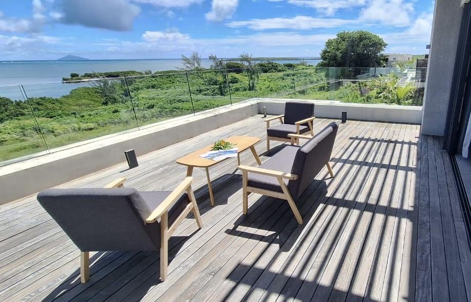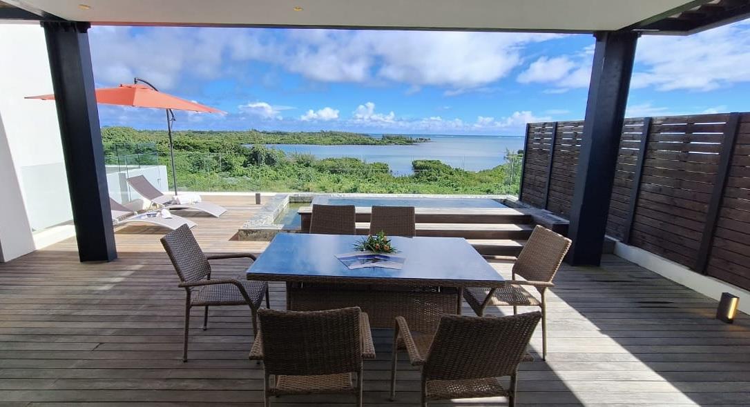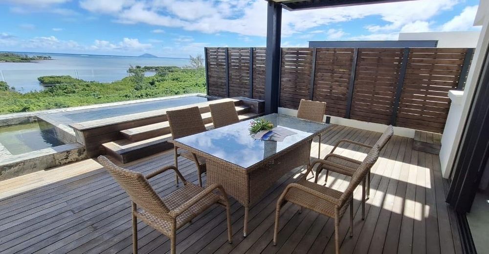 Designed for seamless living, the open-plan living area flows onto the terrace and pool. Every bedroom is an ensuite sanctuary, with the master oriented for sunrise views over the ocean. The secure, palm-lined residence is a peaceful haven just 10 minutes from the M2 highway, midway between Grand Baie and Port Louis.