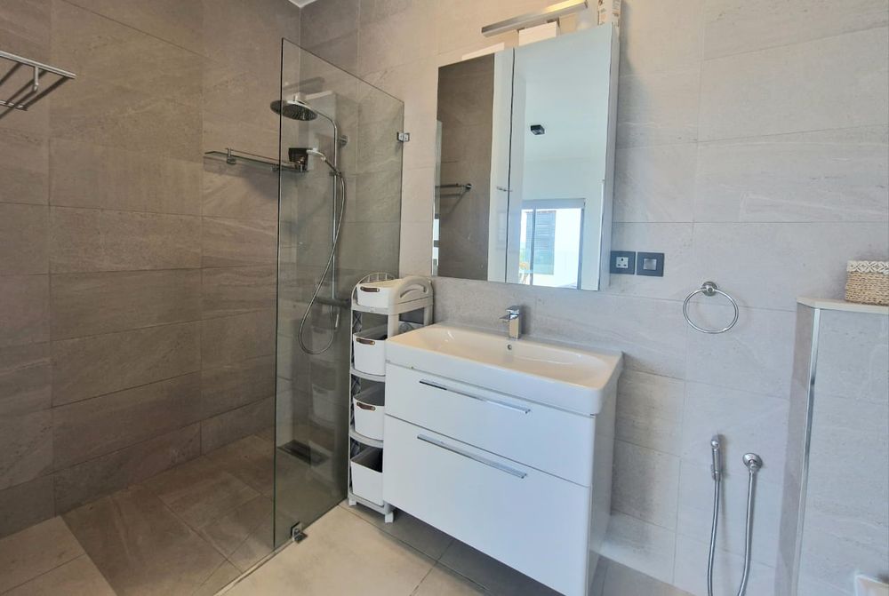 The apartment is tastefully furnished and comprises three bedrooms and three bathrooms, designed for comfort and effortless living. The open-plan living and dining area extends onto a beautiful terrace overlooking the ocean, creating a seamless indoor-outdoor experience ideal for both everyday living and entertaining.
