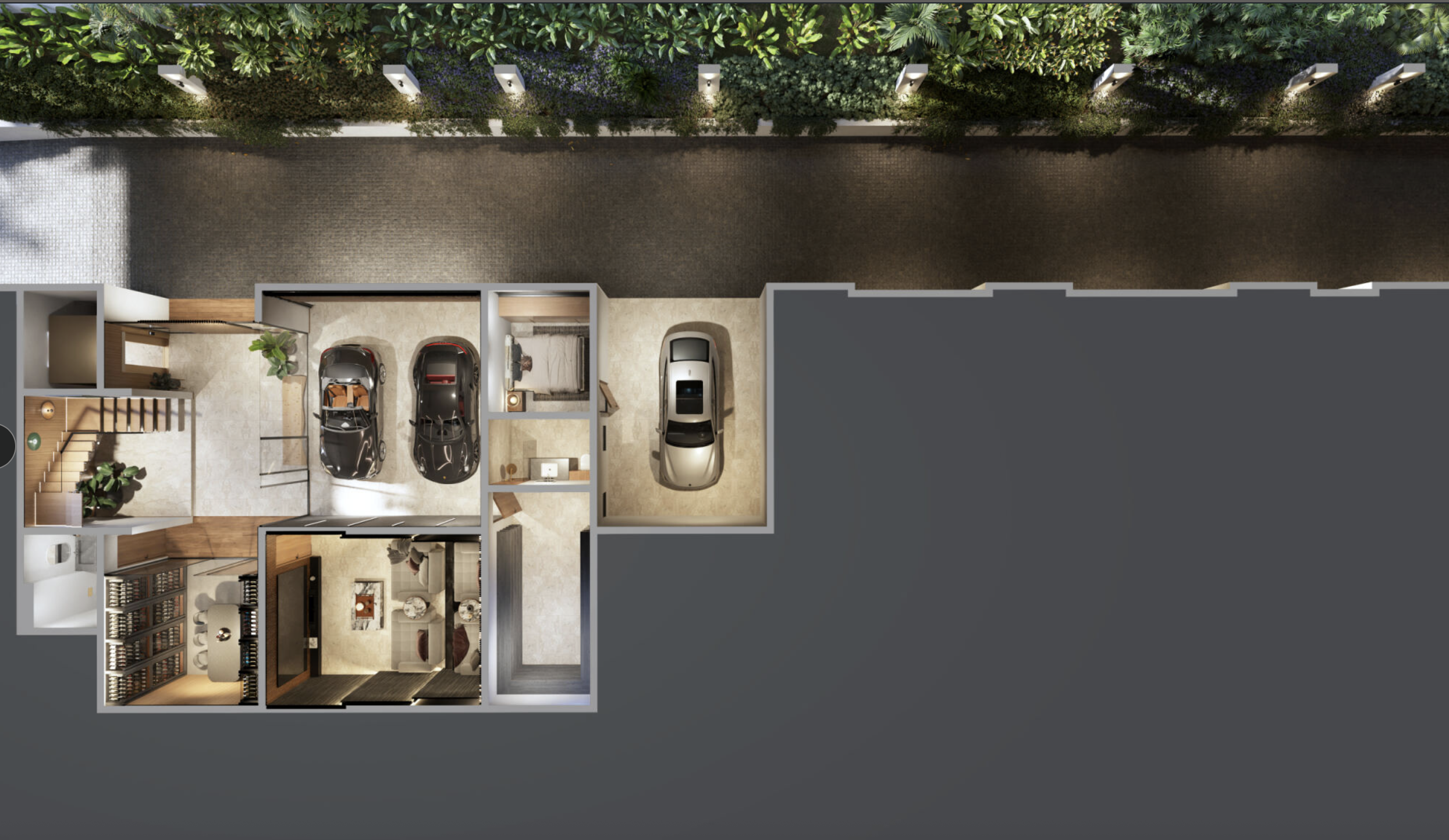 Your private sanctuary includes a dedicated home cinema for intimate entertainment, an elegant wine cellar perfect for connoisseur tastings, and a private lift ensuring effortless movement between levels. The heart of each villa features dual kitchens - a stunning display kitchen for entertaining and a practical service kitchen for seamless meal preparation.